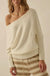 solid, textured knit sweater with the following features: