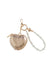 faux pearls; gold hardware; key ring; clasp hook; top zip closure