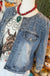 Introducing the Daphne Denim Jacket - the perfect addition to your wardrobe! Made with a cotton blend, it features rhinestones and pearls for added style and flair. With its classic denim look and trendy embellishments, this jacket is a must-have for any fashion-forward individual. Upgrade your outfit with the Daphne Denim Jacket today.