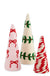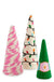 Featuring whimsical felt textures and vibrant designs—from festive string lights to candy-cane swirls and retro ornaments—these trees bring playful personality to any shelf, mantel, or table. Each cone-shaped tree has its own charm, creating a cheerful trio that instantly brightens up your holiday décor. Display them together or mix them into your favorite vignettes for a fun and festive touch.