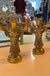 Crafted from resin with a distressed gold finish, these holders are designed to hold taper candles and create a warm, inviting glow. Whether adorning your mantel, dining table, or sideboard, these deer candle holders are sure to become a conversation piece.
