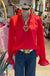 Introducing the Evelyn Color Block Top - a versatile addition to any wardrobe. This top features a bold combination of red and pink colors, complemented by black long sleeves and elegant ruffle detailing at the V-neck. With its eye-catching design and flattering cut, this top is perfect for adding a pop of color to your outfit while staying chic and sophisticated.