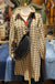 This Hailey Marie Dress features a unique geo-print design in tan and black with red and green stripes adorning the V-neck and sleeves. Made from 100% polyester, this dress is both stylish and comfortable. Perfect for any occasion.