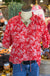 This Haley Red Floral Top is a best-selling style featuring a bold red and white floral print and ruching details. Made of soft cotton, it offers both comfort and a chic, feminine look. With a trendy tie front, this top is the perfect addition to any wardrobe. 100% cotton
