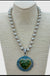 12MM silver metal beads. Pendant has a big bail with etched design on it that allows you to take it off and use it on any other strand or wear necklace by itself as a layer piece or with another pendant.