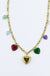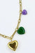 * Fall in love with color in this necklace. * Featuring a golden chain adorned with vibrant heart charms in jewel tone shades, this necklace is the perfect mix of playful and elegant. * Lightweight and versatile. * 17 inches + 2 inches extender.