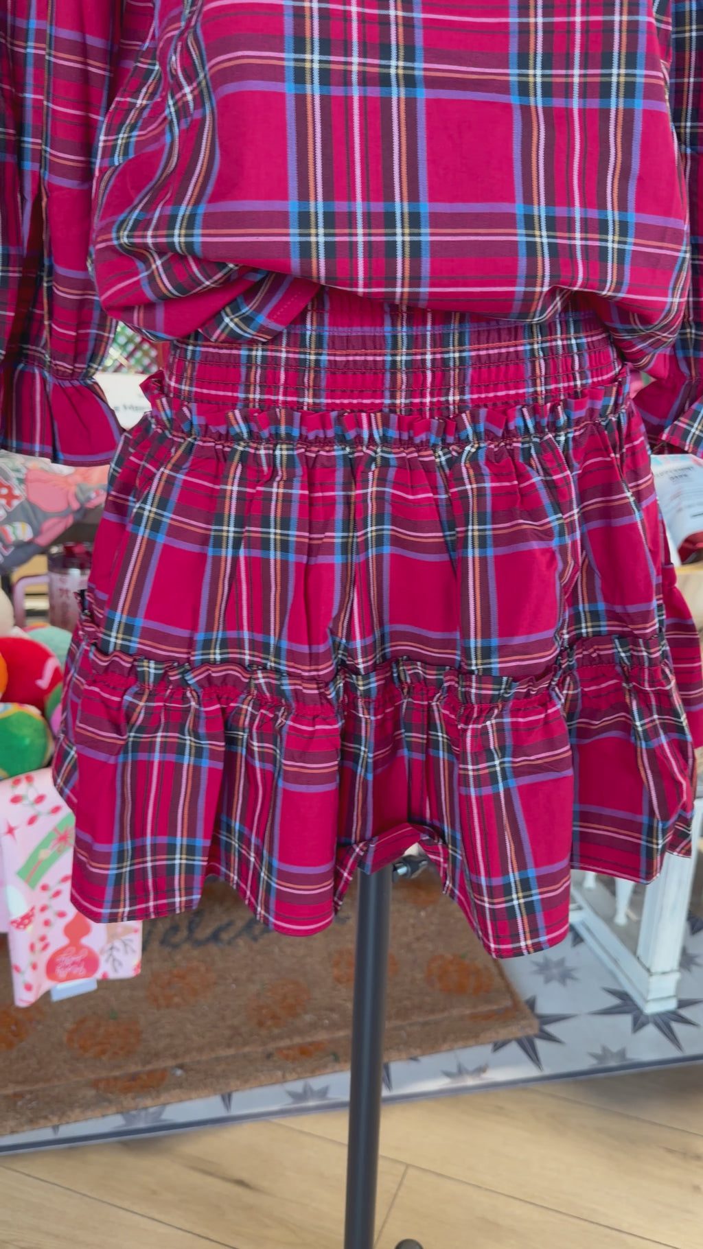 Add a festive touch to your holiday wardrobe with this red plaid skort featuring a sweet tiered design. The cheertul print & playtul silhouette bring a merry, teminine flair - pertect tor holiday gatherings & Christmas 2025.