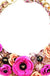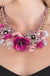 This chunky necklace will meet all your statement jewellery needs. With hot pink floral design and chunky gold chain, this colorful bib necklace is a stand-out piece. Pair it with a simple piece of floral jewelry.   Product Details: * Alloy * Glass crystal * Size: 12" + 3" extension * Closure: lobster clasp