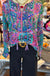 Make a bold statement with the June Blouse, featuring a vibrant kaleidoscope-inspired print in rich pink, green, and blue tones. Designed with a relaxed silhouette, this blouse offers button-down versatility, a classic collar, and adjustable tab sleeves for easy styling. The lightweight fabric drapes beautifully, making it perfect for layering or wearing on its own.