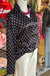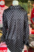 The Lori Lynn Top features a sophisticated black fabric adorned with white polka dots, enhancing visual appeal. Constructed from 100% polyester, it offers durability and ease of care. The button-down design provides versatility, making it suitable for both casual and professional settings.