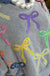 Introducing the Mandy Bow Sweatshirt, the perfect addition to any fashion-forward wardrobe. This gray sweatshirt is crafted from a comfortable cotton blend and features colorful sequence bows throughout for a touch of fun and whimsy. Add a playful pop to your everyday look with this unique and stylish sweatshirt.