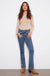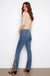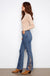 Step into fall in style with these medium blue bootcut jeans. Floral embroidery along the sides adds a touch of elegance to any outfit. With a regular rise and stretchy denim, they offer a comfortable fit, perfect for pairing with boots or heels. A chic addition to your everyday wardrobe.