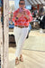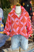 Print top with open wide collared neck features peal buttoned closure, three quarter sleeves, and 1-buttoned peal closure cuffs. - Non-sheer, lightweight. -