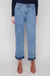 These cropped flare leg jeans are the epitome of chic casual fashion. The medium blue wash and fringe detail at the hem make a distinct style statement. With a regular rise and a touch of stretch, these jeans provide both comfort and fashionable flair. Pair them with boots or sneakers, and you're ready for anything this fall!