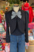 The Regina Jacket is a statement piece designed to turn heads, featuring a structured silhouette adorned with an oversized detachable crystal-embellished bow that adds instant glamour. Perfect for evening events or festive occasions.
