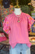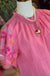 Bubble gum pint textured top with embroidery details on sleeve.