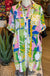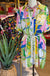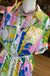Pink and green floral dress with detachable belt. Front pockets. Rice rack accents.