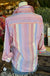 Double darts shape a sleek, feminine silhouette in this effortlessly polished, non-iron classic. A chic hidden placket conceals shimmery shell buttons, while the open neckline adds a refined touch. Tailored three-quarter sleeves bring confidence and versatility, making this a wardrobe essential. Soft ombré stripes flow vertically for a modern take on a timeless pattern — except beneath the cuffs, where bias-cut stripes add a playful, unexpected twist.