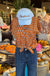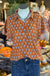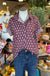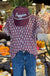 This top is perfect for all casual and game day needs, pair with denim shorts or skirt to elevate your look. Between the fun ruffled sleeves and white floral pattern against that bright maroon or burnt Orange, and you have the ultimate outfit.