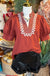 Stay stylish and comfortable with the Tara Lynn Top. Made from 100% cotton, this perfect burnt orange top features delicate cream embroidery for a unique touch. Upgrade your wardrobe and enjoy the benefits of both style and comfort.