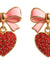 • Pretty pink bow earrings with red pavé rhinestone heart