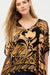 Crafted from a rich silk blend, the Claudia Renee features an ornate scrolling pattern in vibrant color. Designed with elbow length sleeves and a closed side seam, this eye-catching poncho is finished with a cami lining.