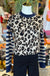The Adrian Leopard Sweater features a stylish leopard print with navy and tan striped sleeves, all made from a comfortable poly blend knit. Stay cozy and fashionable in this must-have sweater.