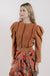 The Liv Knit Pullover is a modern take on timeless knitwear, designed with sculpted puff sleeves and cable-inspired detailing at front and back. Its warm caramel hue and fitted ribbed hem create a flattering silhouette