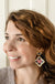 The Virginia Statement Earring was made using vintage fabric from Gloucester, Virginia. Each piece was handsewn, hand cut, and hand painted at the Katie Lynne studio in San Antonio, Texas.