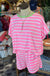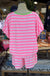 Get ready to stand out in the Wendy Lynn Set! This vibrant hot pink stripe set comes with a playful hit of green at the neckline, adding a fun and unique touch to your look. Be bold, be adventurous, and be stylish with this quirky and eye-catching set! Cotton Blend