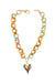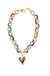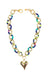 Plated chain with heart charm, and mixed materials. Approximately 16-18" length. Women owned. Handmade in the USA.
