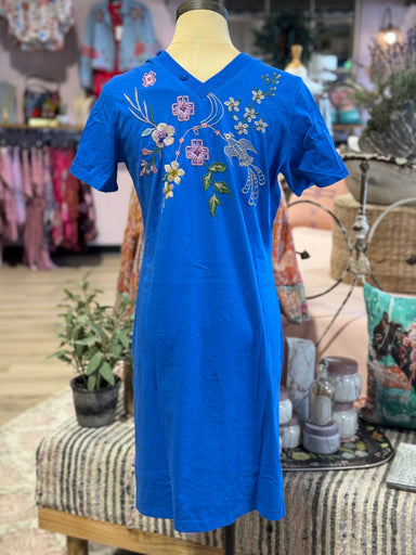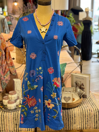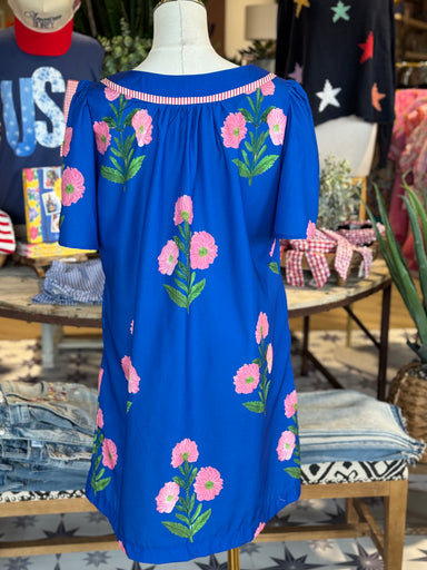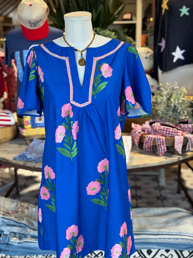 This Marcella dress features a beautiful royal blue floral print with a subtle striped detail. Made with a blend of high-quality polyester, this dr...