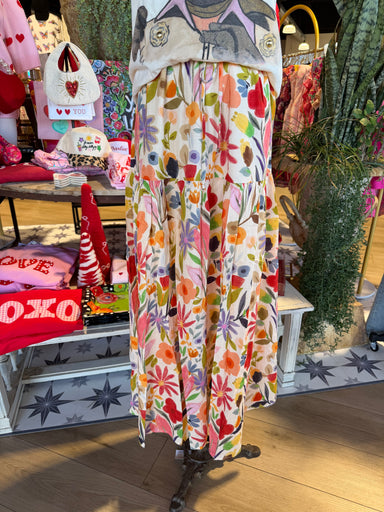 Elastic waist full midi skirt. Pair with our Emery corset for a feminine, romantic look. 100% Viscose.