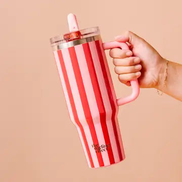 34 oz size Plastic straw and lid included Straw topper Easy to carry handle Care: Hand-wash recommended