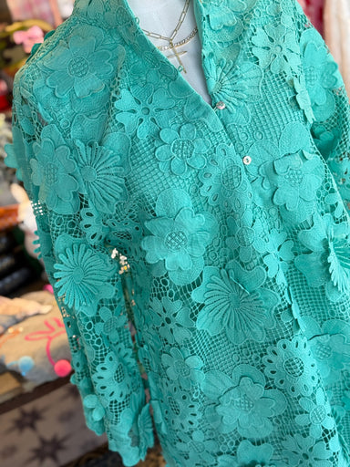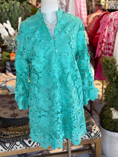 On Sale Alissa Lace Dress $169.00 | / Stunning turquoise lace dress with lining in bodice. 3/4 sleeve