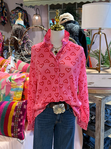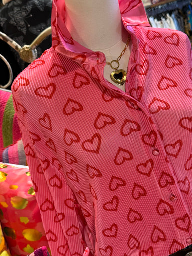 Valentine pleated heart print oversized shirt. CircumferenceS- 42 inchesM- 44 inchesL- 46 inches