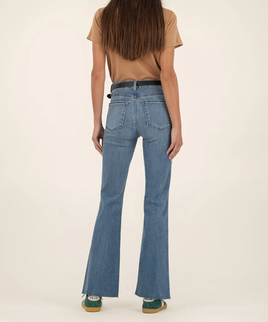 Turn heads in these flare jeans, rocking a vintage-inspired medium wash with Fab Ab for that flawless fit. The raw hem adds a rebellious touch, w...