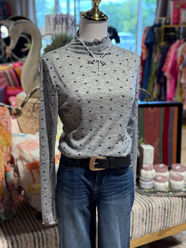 $44.00| /Introducing our Grey Tissue Tee featuring sophisticated black bows. Made with delicate tissue material, this tee offers comfort and style. Perfect ...