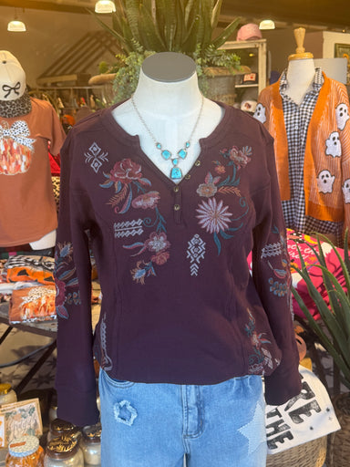 Discover the comfort and style of our Vee Tee. Made from high-quality cotton, this maroon waffle Henley shirt features button detailing and exquisi...