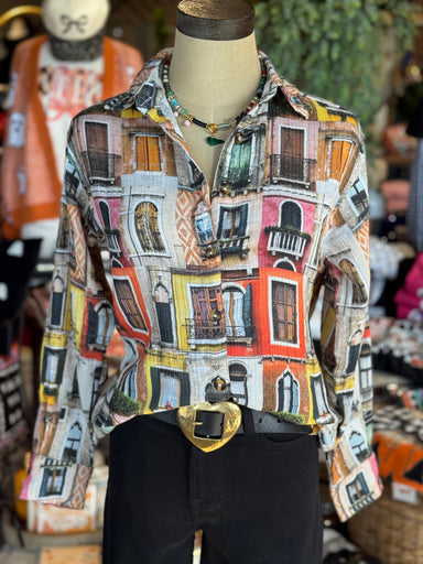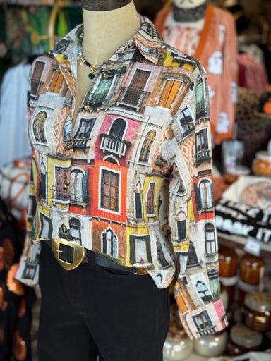 Transport yourself to Italy with Window To Italy - a custom print of beautiful windows into Italy. Button up . Light weight 100% cotton Circumfere...