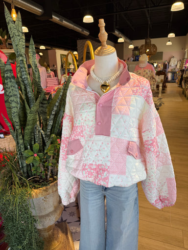 $59.00| /The Zoe Quilted Sweater features a textured pink combo design with a quad zipper for versatile styling. Constructed from a cotton blend with 3% spa...
