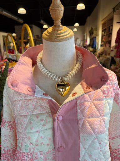 $139.00| /Plated chain with heart charm, and mixed materials. Approximately 16-18" length. Women owned. Handmade in the USA.