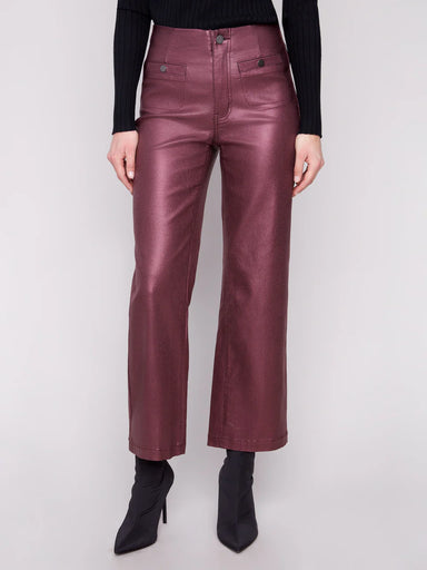 $119.00| /Description Metallic Wax Flared Pants in rich Cabernet red are perfect for stepping up your style. They feature an eye-catching metallic finish t...
