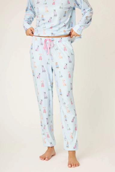 Paw-sitively cozy and snow much fun, these pajama pants are crafted from double-brushed pointelle with a light blue backdrop dotted in playful pups...