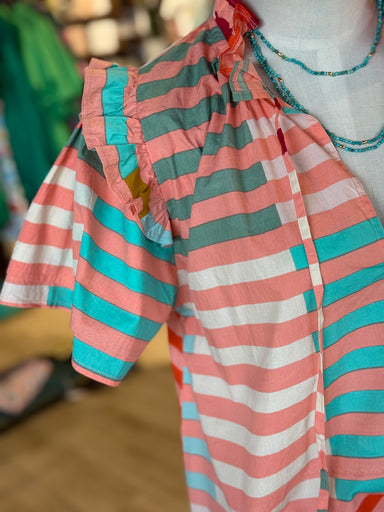 Get ready to add a pop of color to your wardrobe with our Apricot Colorful Top! This playful cotton top features a fun apricot and teal stripe patt...