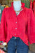 Introducing the Kayla Grace Top, a red floral 3D blouse with elegant button detailing. Made with high quality materials, this blouse adds a touch of sophistication to your wardrobe. The 3D floral design offers a unique and eye-catching look, perfect for any occasion. Elevate your style with the Kayla Grace Top