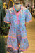 Short puff sleeves tiered floral babydoll dress with solid contrast, front button up, ruffled neckline & sleeve detail, side pockets.