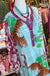 Mid length long sleeve placket dress with side slits in our Twisted Love print. Placket has a V-neck and is long. Placket and pocket flaps are in pink. Skinny cuffs are in a flower print. Body of the dress has two tigers walking through the water among the flowers. Sleeves are pink with large white flowers. Back of the dress is a predominantly pink small geometric print. Super comfy, feminine look.