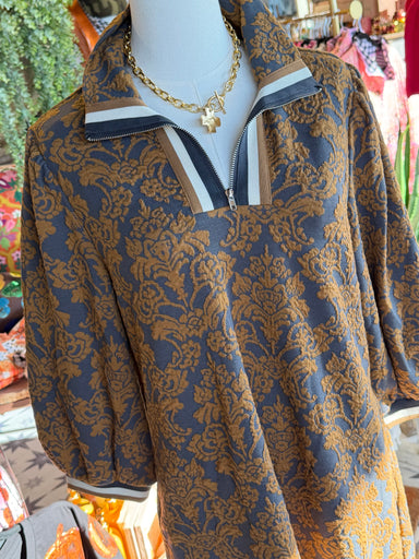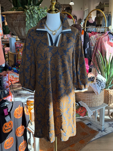 This Toffee Day Dress is a chic and elegant addition to any wardrobe. Made from high-quality materials, the brown and graphite embossed floral de...