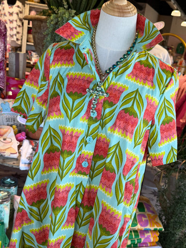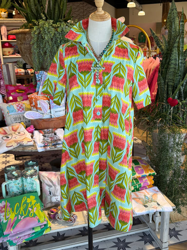 The Tulip Swing Dress features a custom mint floral print that enhances aesthetic appeal while providing comfort. Its button detailing adds a struc...